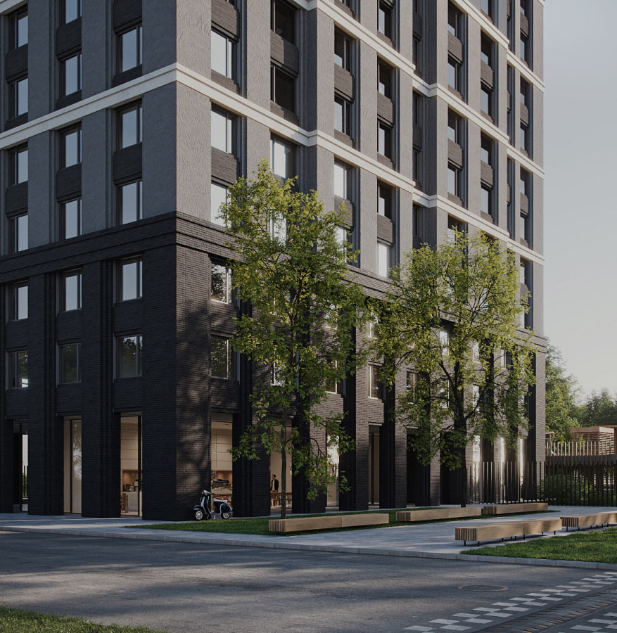 Дом ZOE расположен недалеко, но в глубине от основных шумных транспортных магистралей города. Локация проекта позволяет создать для жителей комфорт тишины и ощущение приватности.
